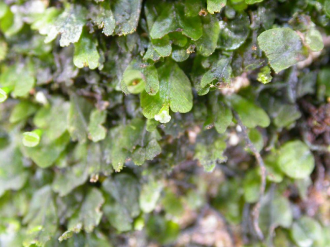 Didymoglossum motleyi (Bosch) Ebihara & K.Iwats.FamilyHymenophyllaceae NomenclatureDidymoglossum motleyi (Bosch) Ebihara & K.Iwats., Blumea 51: 236. 2006. – Microgonium motleyi Bosch, Hymenophyll. Javan.: 5, t. 1. 1861; Tagawa & K.Iwats., SouthE. Asian Stud. 5: 39. 1967; Tagawa & K.Iwats., Fl. Thailand 3: 94. 1979. – Trichomanes motleyi (Bosch) Bosch, Ned. Kruidk. Arch. 5: 145. 1861; Bedd., Handb. Ferns Brit. India: 36. 1883; Copel., Philipp. J. Sci. 51: 201, pl. 30. 1933; Tardieu & C.Chr., Fl. Indo-Chine 7(2): 61. 1939; Holttum, Rev. Fl. Malaya ed. 1, 2: 92, f. 30. 1955 [‘1954’]; Tagawa & K.Iwats., Fl. Thailand 3: 614. 1989; Boonkerd & Pollawatn, Pterid. Thailand: 76. 2000. Trichomanes nanum auct. non Bosch: Christ, Bot. Tidsskr. 24: 103. 1901. DescriptionRhizome creeping on base of tree, about 0.1 mm diam., densely hairy with short dark brownish hairs. Laminae almost sessile or on very short hairy stipes, simple, imbricate, circular or orbicular-oblong, the margin entire and plane, at most 4 mm in every direction; costae short, at most halfway to the apex of frond, without any branching; false veinlets many, simple or branched. Sori one on a frond, in a sinus at end of short main vein, deeply immersed; involucre tubular with dilated mouth, less than 1 mm long, 0.4 mm broad, the mouth up to 1 mm diam. Distribution in ThailandNORTHERN: Tak; SOUTH-WESTERN: Phetchaburi; PENINSULAR: Chumphon, Surat Thani, Phangnga, Phuket, Trang. Wider DistributionPeninsular Malaysia and Borneo. EcologyOn basal part of tree trunks in dense primary forest at low altitudes. Proposed IUCN Conservation AssessmentLeast Concern (LC). This species is widespread and not under any immediate known threat. Voucher specimens - ThailandMiddleton et al. 1764, Phetchaburi, Kaeng Krachan National Park (A). Habit Sori |